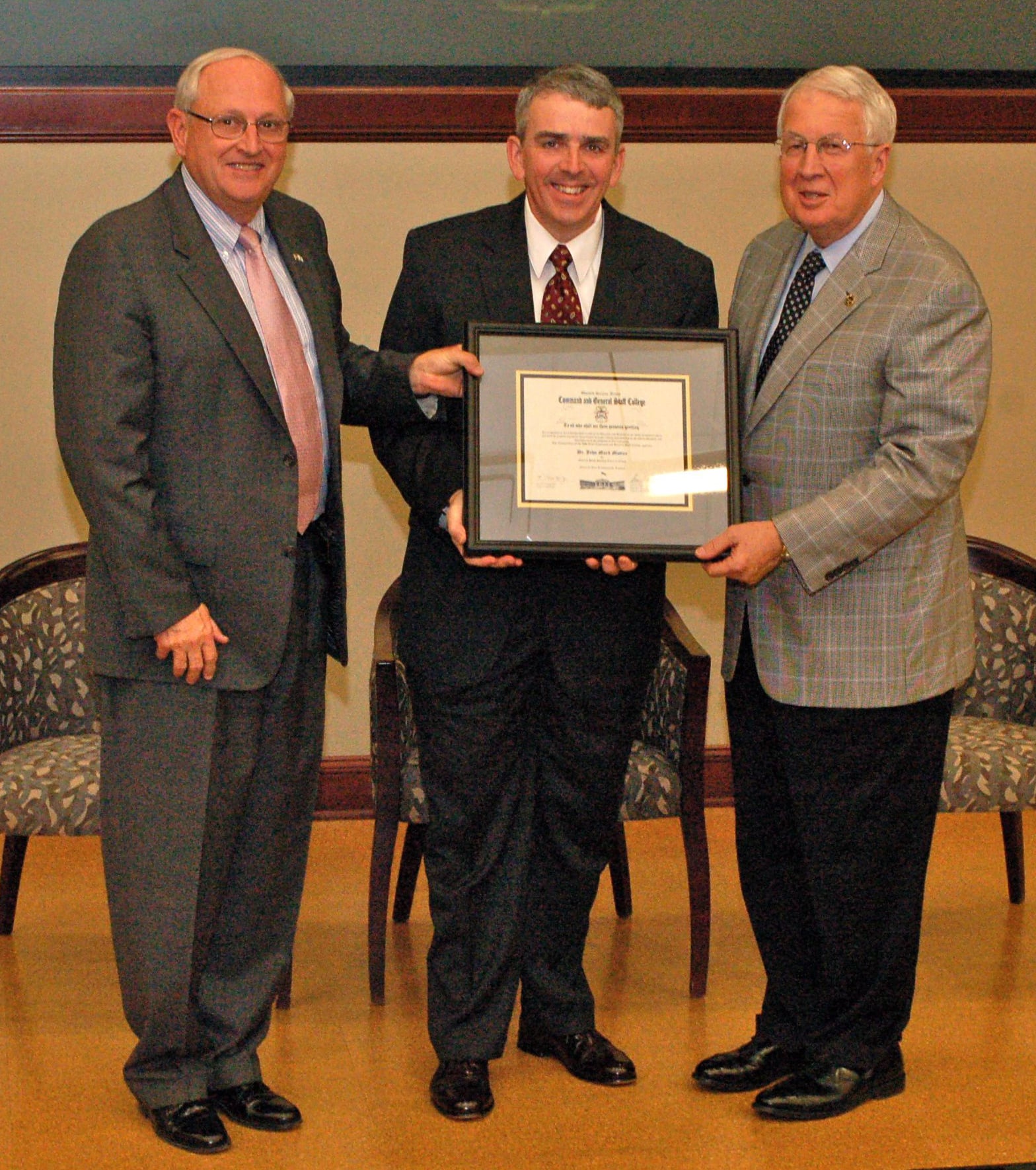 Dr. John Mark Mattox was seated as the visiting professor for the Gen. Hugh Shelton Chair in Ethics with a short ceremony in the Marshall Auditorium of the Lewis and Clark Center at Fort Leavenworth. Dr. Chris King, Dean of the College (left in the photo), and retired Lt. Gen. John Miller, CGSC Foundation Vice Chairman, welcomed Dr. Mattox to the position.