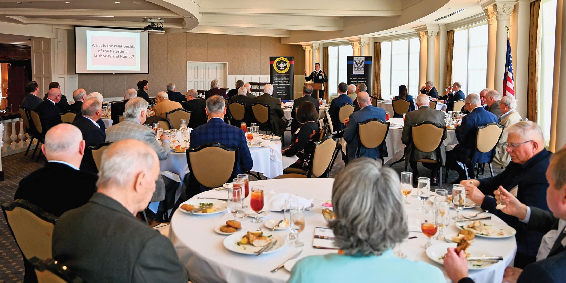 The CGSC Foundation’s Simons Center hosted an Arter-Rowland National Security Forum luncheon event on Feb. 15, 2024, at the Carriage Club in Kansas City. The event featured a presentation entitled “Crisis in the Middle East: Understanding America’s Hotel California.”