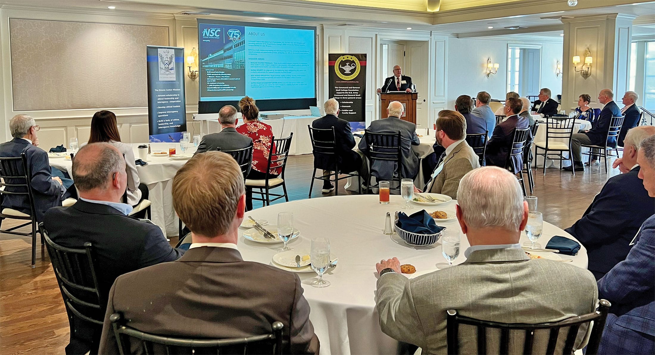 The CGSC Foundation’s Simons Center hosted an Arter-Rowland National Security Forum luncheon event on March 14, 2024, at the Mission Hills Country Club in Kansas City. The event featured a presentation on the Department of Energy’s Kansas City National Security Campus.