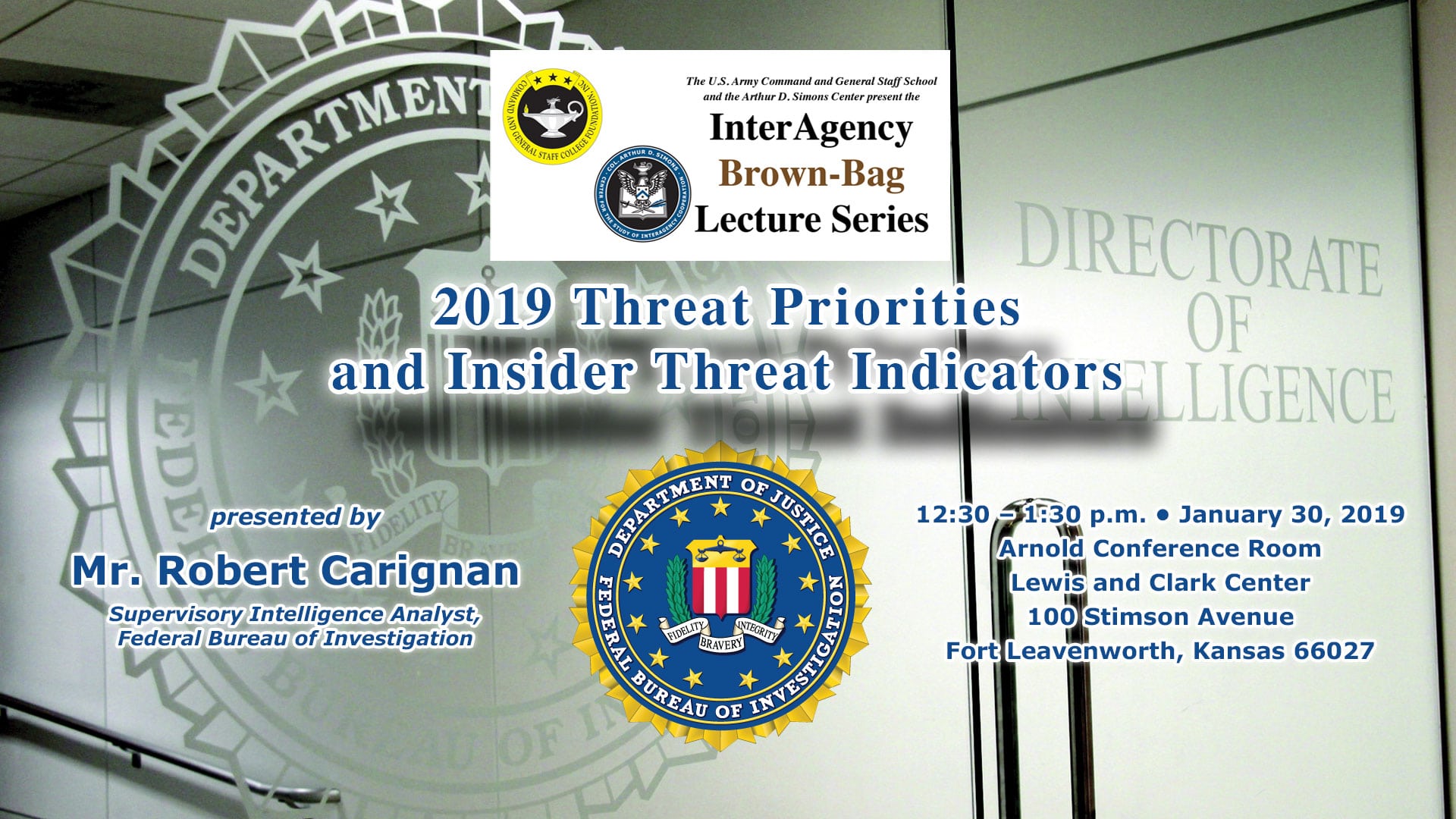 Supervisory Intelligence Analyst Robert Carignan of the FBI’s Kansas City Division will lead a discussion on the Kansas City Division’s 2019 threat priorities and observed insider threat indicators.