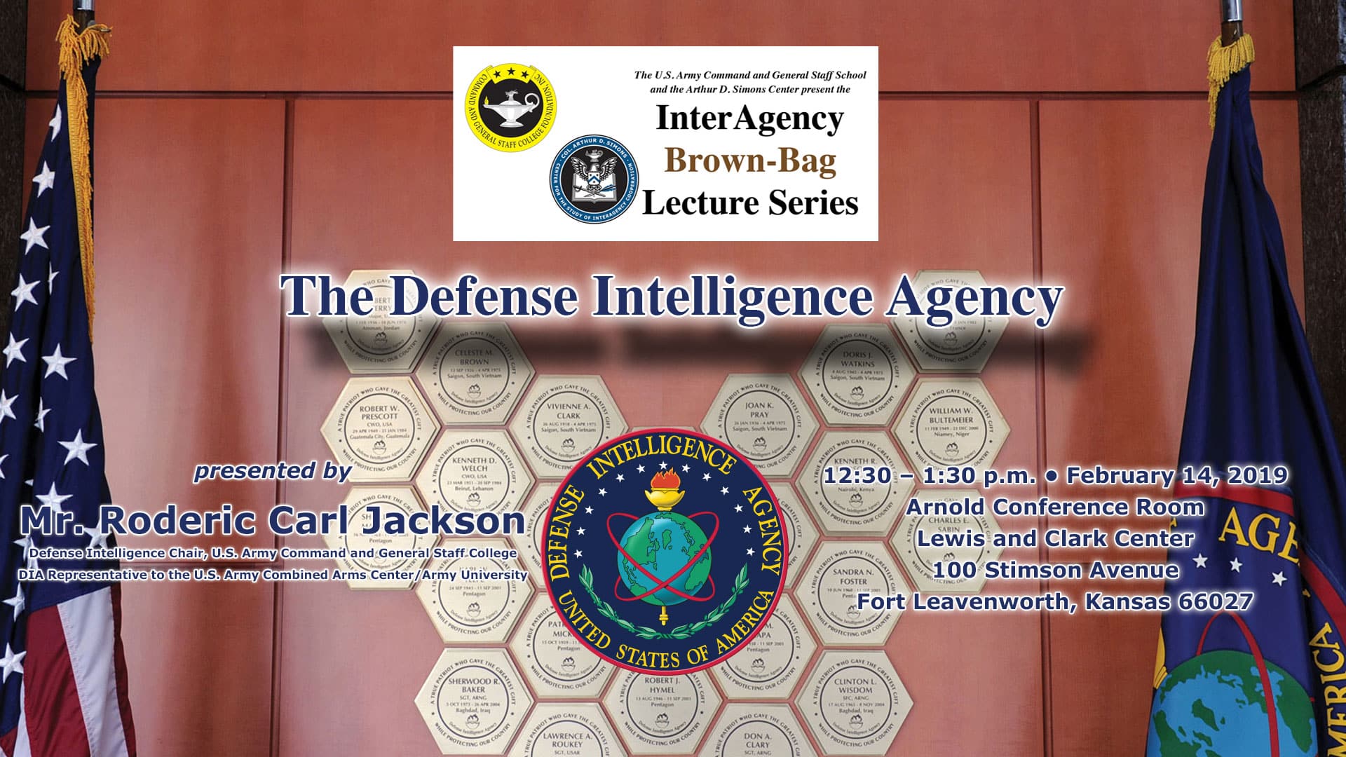Mr. Roderic C. Jackson, the Defense Intelligence Chair and Defense Intelligence Agency (DIA) Representative to the Combined Arms Center and Army University, will lead a discussion and provide insight into the Defense Intelligence Agency, which is one of our nation’s least understood intelligence organizations.