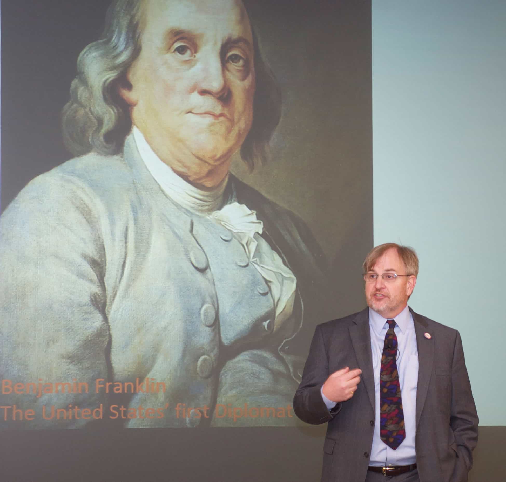 Mr. Andrew B. Mitchell, a career Foreign Service Officer, led the discussion in the InterAgency Brown-Bag Lecture conducted Nov. 14, in the Arnold Conference Room of the Lewis and Clark Center on Fort Leavenworth. Mitchell provided attendees with an overview of the U.S. Department of State mission, it’s history and how it is currently organized. He also discussed how State operates as an important element of the U.S. national security team, as well as how it conducts foreign policy as the face of our nation around the world.