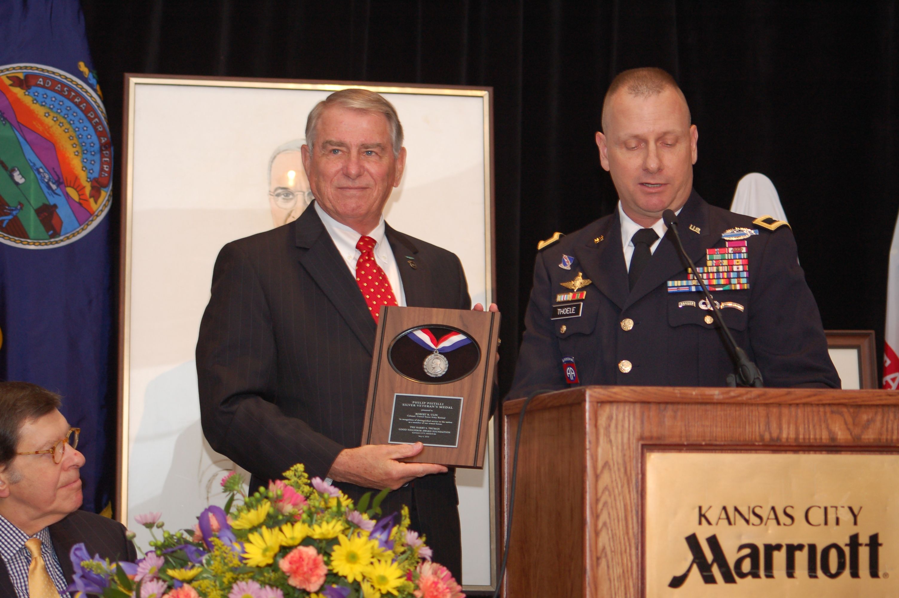 Brig. Gen. Scott L. Thoele, deputy commanding general of the Army National Guard-Combined Arms Center at Fort Leavenworth, presented the award to Ulin on behalf of the Harry S. Truman Good Neighbor Award Foundation. The award, established in 1973, was created to recognize the accomplishments of the Veterans of Vietnam. Soon after, it was expanded to include the veterans of all wars.
