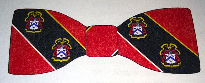 The bow ties are made in England by William Turner & Son, the same company that makes the Foundation neckties. Bow ties are $24 each, plus tax, and a $3 shipping charge for phone orders. Regular neckties (single or multi-crested) are $22 plus tax, and $4 for shipping.