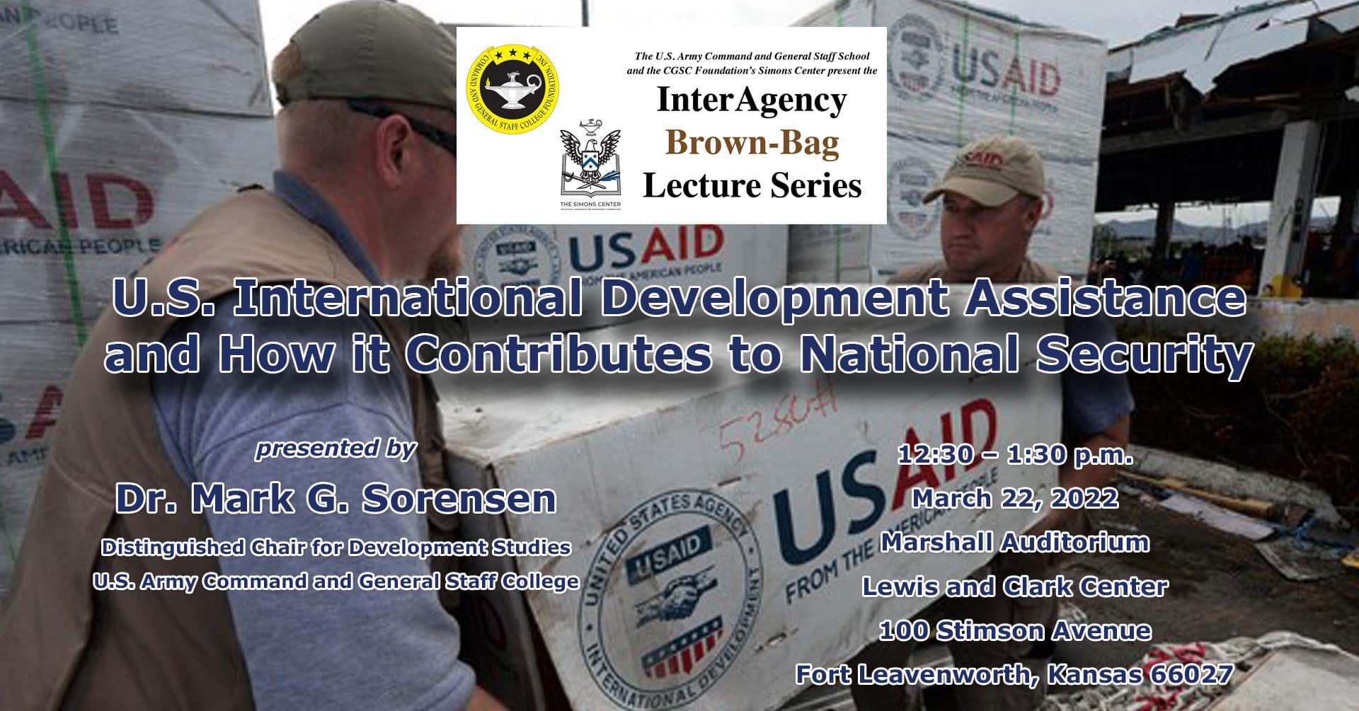 Dr. Mark Sorensen, the CGSC Distinguished Chair for Development Studies, will lead a discussion on how the U.S. Agency for International Development (USAID) leads America’s development assistance abroad and how USAID coordinates with defense professionals.