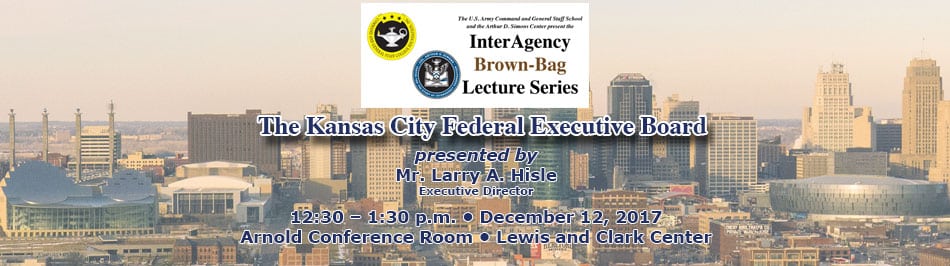 Mr. Larry A. Hisle, executive director of the Greater Kansas City Federal Executive Board, will lead the discussion in the next InterAgency Brown-Bag Lecture at 12:30 p.m., Dec. 12, in the Arnold Conference Room of the Lewis and Clark Center on Fort Leavenworth.
