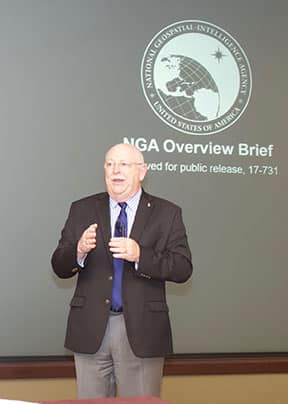 Mr. Ralph M. Erwin, Senior Geospatial Intelligence Officer, led a discussion on the roles and missions of the National Geospatial-Intelligence Agency (NGA) on September 24 – the second to speak as part of the InterAgency Brown-Bag Lecture Series for academic year 2019.