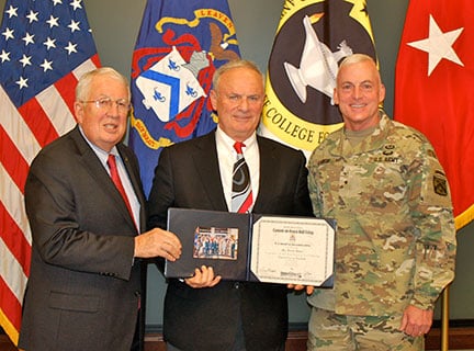 The program kicked off Nov. 29 with a welcome by CGSC Foundation CEO Doug Tystad who entertained the group with an impromptu history lesson and quiz about the Army’s five 5-star generals. After Tystad’s welcome, the group moved to the Arnold Conference Room where Brig. Gen. Eugene (Gene) J. LeBoeuf, Army University’s Deputy Commanding General and Executive Vice Provost for Academics Affairs, provided the group with an overview of Army University and Army leader development. After LeBoeuf’s presentation, Mr. Jeff LaMoe, CGSC Chief of Staff, provided the roundtable participants with some history of CGSC and an overview of Army professional education with special emphasis on the College.