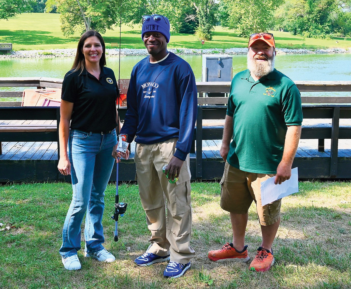 At the end of the two-hour fishing period Morgan, along with Tad Slatter from the Rod and Gun Club, presented awards for the most fish caught in four divisions: male youth, female youth and male and female adult. Award winners received a new rod and reel combination. The winners were (photos of the winners below):