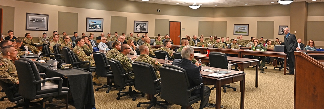 Thomas A. Gray, the U.S. Army Space and Missile Defense Command Liaison to the Combined Arms Center and Army University, addressed a packed room on Sept. 24, 2019, as he spoke about the evolution of space policy, a space force and today’s challenges.