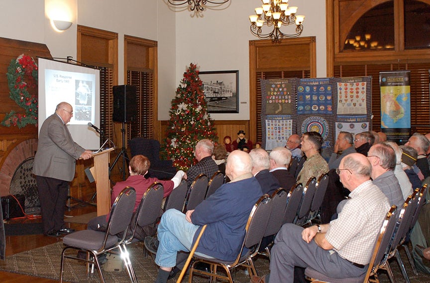A surprise highlight during the question and answer portion of the lecture was an impromptu briefing by retired Lt. Col. Norm McLeod who commanded Company D of the 1st Battalion, 7th Cavalry after the first battle of the Ia Drang.