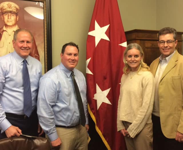 Randy and Tyler Reed from Reed Automotive Group in Kansas City, took part in the Foundation’s “Walk and Talk” program Nov. 10. They were joined in the visit by Kevin Koster, CEO of Skopós, a marketing and advertising firm in Kansas City, and Shawn Wesner, a grants writer for the Simons Center. The Reeds both served their country in the military. – Randy served in the Air Force and Tyler served in the Army after graduating from West Point.
