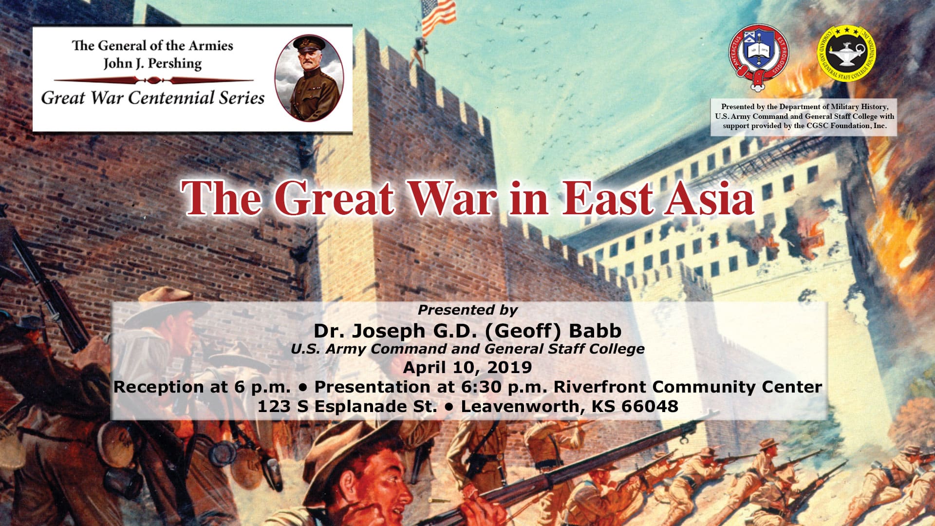 The Department of Military History of the U.S. Army Command and General Staff College and the CGSC Foundation at Fort Leavenworth invite the public to attend the 19th in a series of lectures intended to educate the public about World War I during its 100-year commemoration. – Dr. Joseph G.D. (Geoff) Babb will present “The Great War in East Asia,” at the Riverfront Community Center in downtown Leavenworth, Kansas (123 S Esplanade St.), April 10, at 6:30 p.m. Attendees are also invited to the reception that begins at 6 p.m.